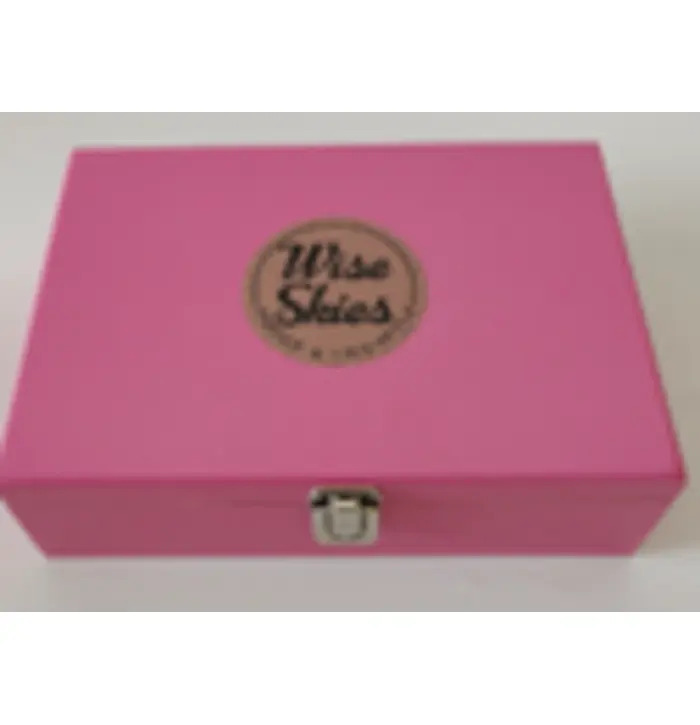 Keep your smoking essentials stylishly organised with the Wise Skies Smokers Box in vibrant pink. This sleek, lockable storage box features a sturdy build, secure metal latch, and ample interior space for your herbs, lighters, rolling papers, and accessories. The minimalist Wise Skies branding adds a touch of personality to this functional storage solution. Perfect for at-home use or discreet travel.