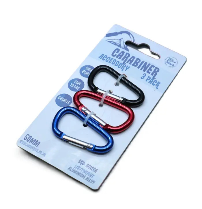 This assorted carabiner pack features lightweight, durable 50mm aluminium clips designed for everyday convenience and organisation. Each pack includes multiple vibrant colours, making it easy to colour-code and quickly identify keys, accessories, or gear. The smooth spring-loaded gate allows for fast, one-handed attachment, while the compact, slim profile keeps them practical for pockets, bags, belts, backpacks, or keyrings. Ideal for home, travel, camping, festivals, and general daily use, these carabiners offer a reliable and stylish solution for keeping essentials securely clipped and within reach!