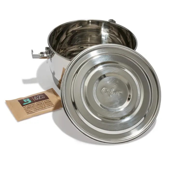 The way in which herbs is stored affects the quality of these herbs. Curing and storage of herbs in stainless steel CVault containers combined with the use of Boveda humidity packs guarantees an optimal quality product. The storage system conserves quality and prevents the herbs from losing weight and degrading.
