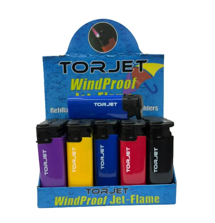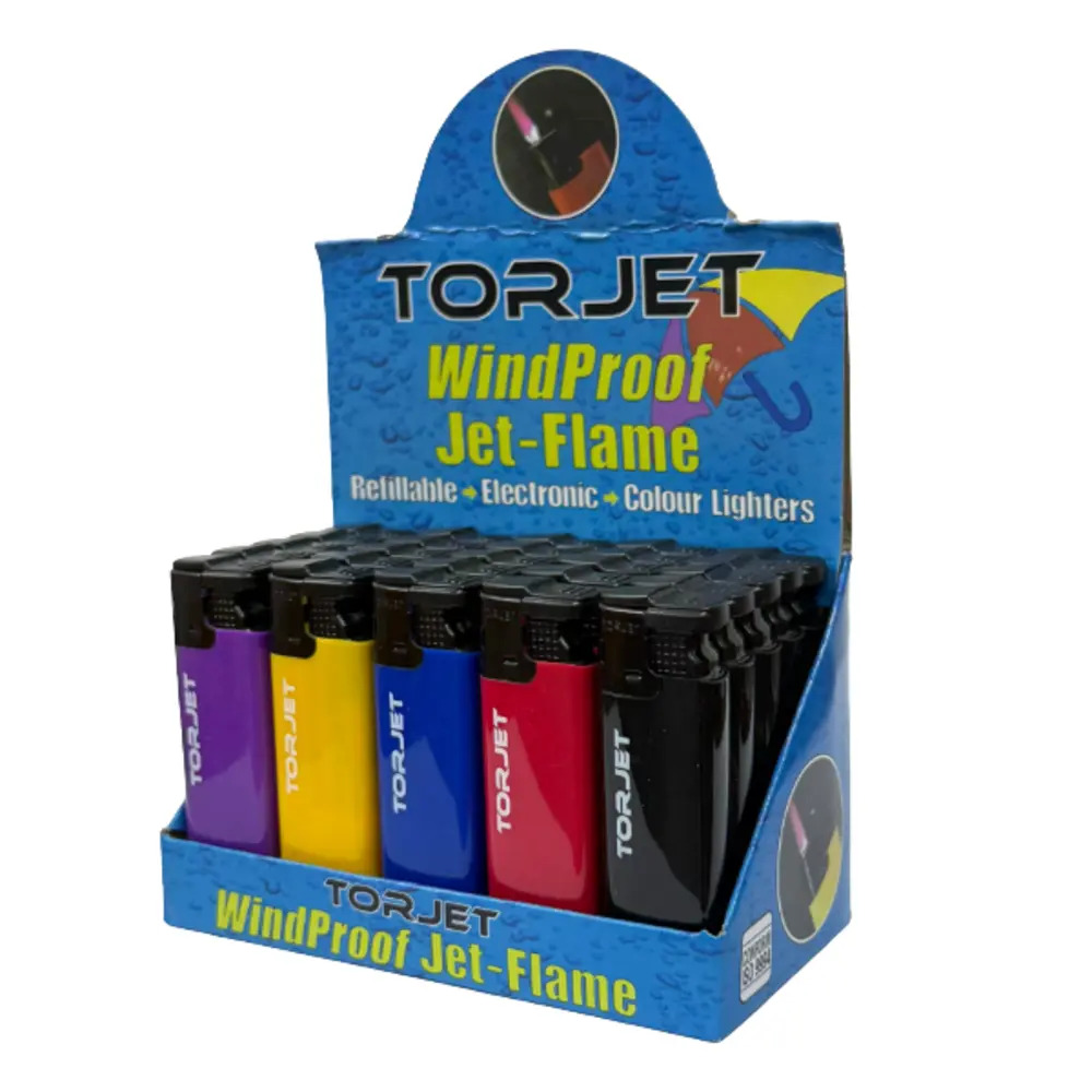 Light your Cigarettes come Rain or Wind with these Torjet Jet Flame Lighters! These Electric Ignited Lighters come in a range of Assorted colours from red to black and even purple! Each Lighter is also refillable meaning you can keep using it for longer!