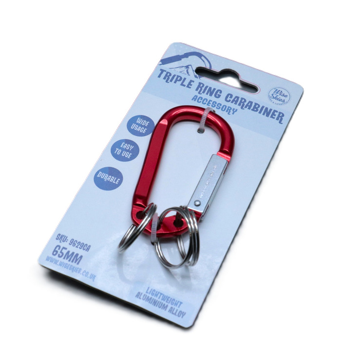 This Triple Ring Carabiner Clip is a practical and versatile accessory made from lightweight yet durable aluminium alloy. Featuring three attached keyrings, it’s perfect for organising keys, securing gear, and attaching small items to backpacks or belts. Its spring-loaded gate design ensures quick and easy use, while the assorted colour options add style and flexibility. Ideal for everyday use, camping, hiking, travel, and outdoor activities.
