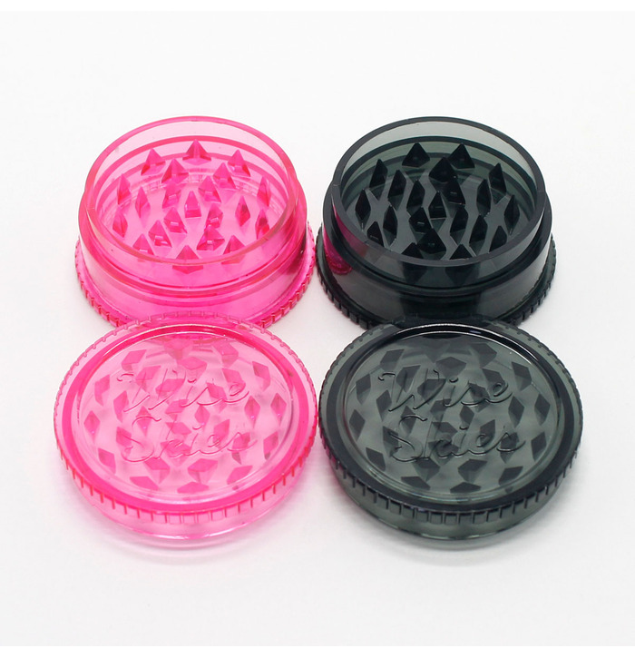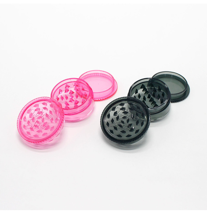 Grind up your Tobacco & Herbs in style with these Plastic 55mm 2-Part Grinders! Featuring a simple yet effective press-fit design as compared to most grinders which use a magnetic connection to hold their pieces in place, this helps to eliminate the build up of mess and debris on the inside of the grinder, giving the mess one less place to stick to and allowing for more capacity within the Grinder!