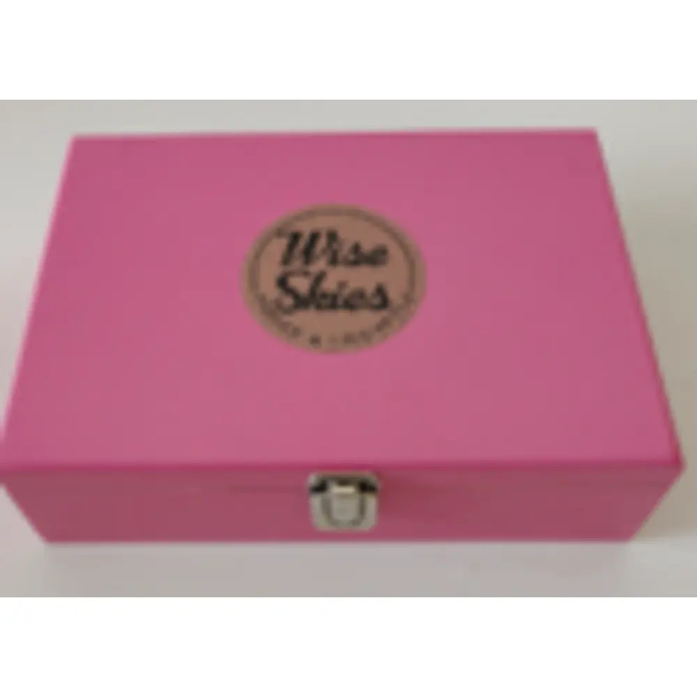 Keep your smoking essentials stylishly organised with the Wise Skies Smokers Box in vibrant pink. This sleek, lockable storage box features a sturdy build, secure metal latch, and ample interior space for your herbs, lighters, rolling papers, and accessories. The minimalist Wise Skies branding adds a touch of personality to this functional storage solution. Perfect for at-home use or discreet travel.
