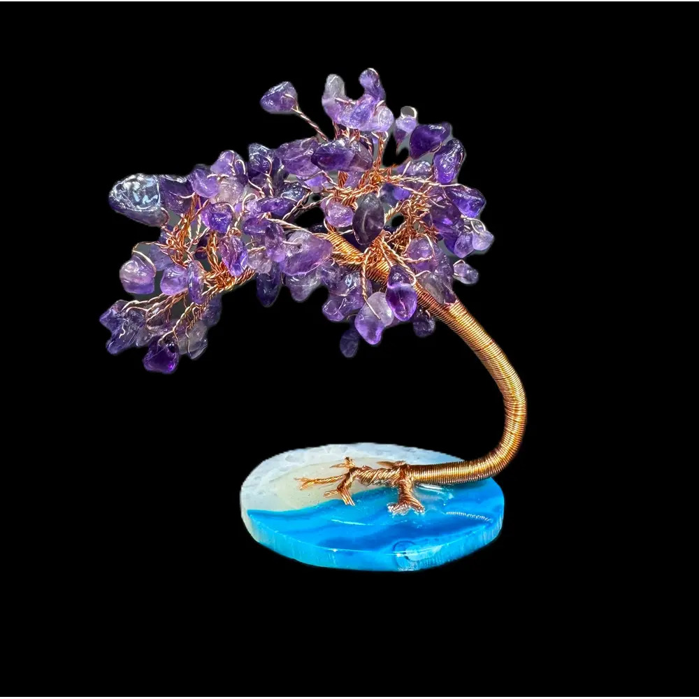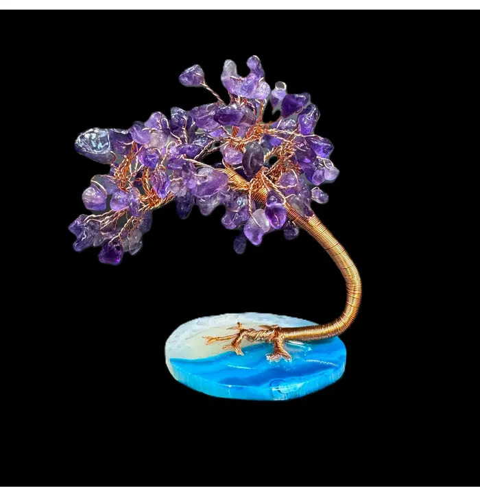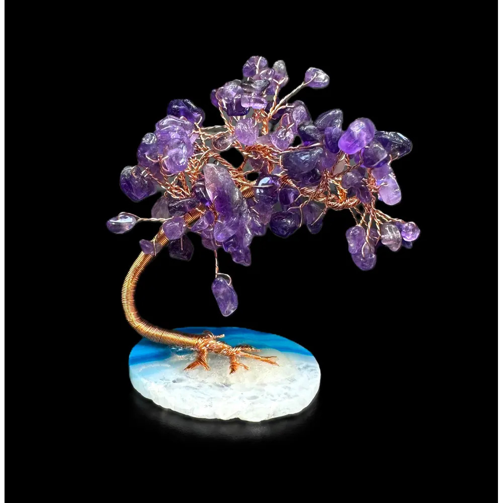 This beautiful crystal tree is made up of amethyst chip stones, amethyst is well known to reducing stress and promoting calmness. Bring positive energy into your home and a beautiful decor with this gorgeous amethyst handcrafted tree.