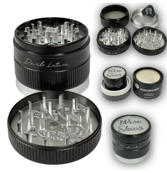 Each grinder also comes Complete with Cut out Wise Skies Logos instead of Printed designs meaning that you won't have to worry about them wearing off or fading!