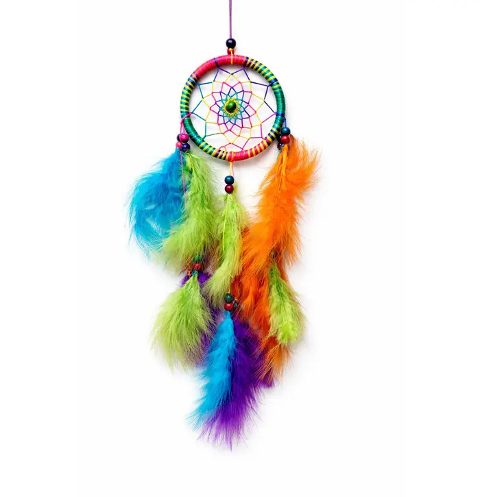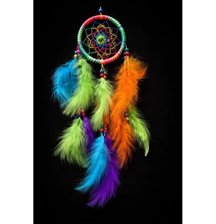 Allow some peace and protection into your home with this simply stunning rainbow feathered dream catcher. this beautiful hanging decoration will provide you with all the protection for your mind during your sleeping hours and provide a stunning aesthetic to any room you may choose to keep it in.