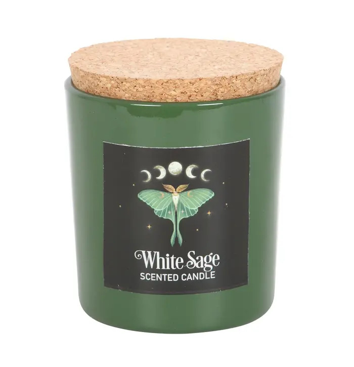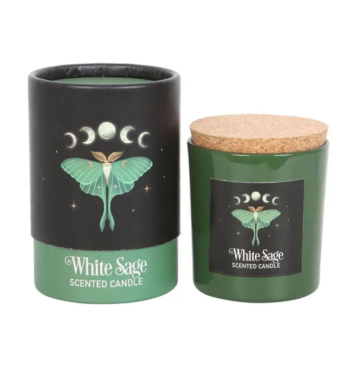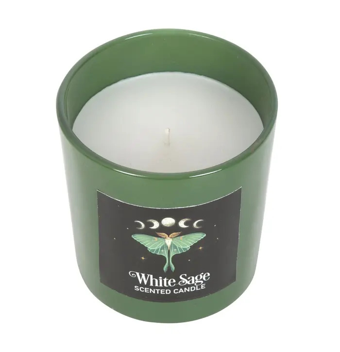 This White Sage Scented Candle is designed to bring cleansing, clarity, and peace into your space. Presented in a beautifully illustrated green glass jar featuring a mystical luna moth and moon phases, it creates a calming, spiritual ambiance both lit and unlit. The candle emits the fresh, purifying aroma of white sage, perfect for meditation, intention-setting, energy cleansing, or simply refreshing the energy in your home. Packaged in a matching decorative tube with cork lid, it makes a thoughtful gift for lovers of spirituality, nature, or aesthetic home décor.