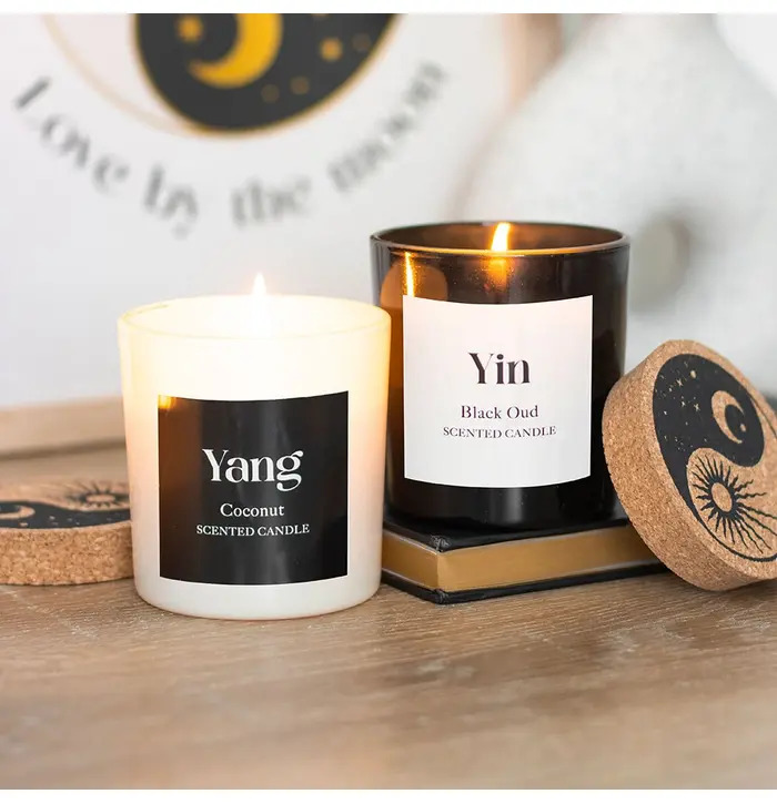 This beautifully balanced set of 2 scented candles is inspired by the harmony of Yin and Yang. The white Yang candle features a fresh, tropical coconut fragrance that brings warmth, brightness, and uplifting energy. The black Yin candle is infused with deep, luxurious black oud, offering a rich, grounding aroma perfect for calm and reflection. Each candle is presented in a sleek glass jar with a minimalist label, making the pair ideal for display in any modern or spiritual home setting. Together, they create a perfect scent duo symbolising balance, unity, and serene ambience. An excellent gift for couples, friends, or anyone who loves meaningful home fragrances.