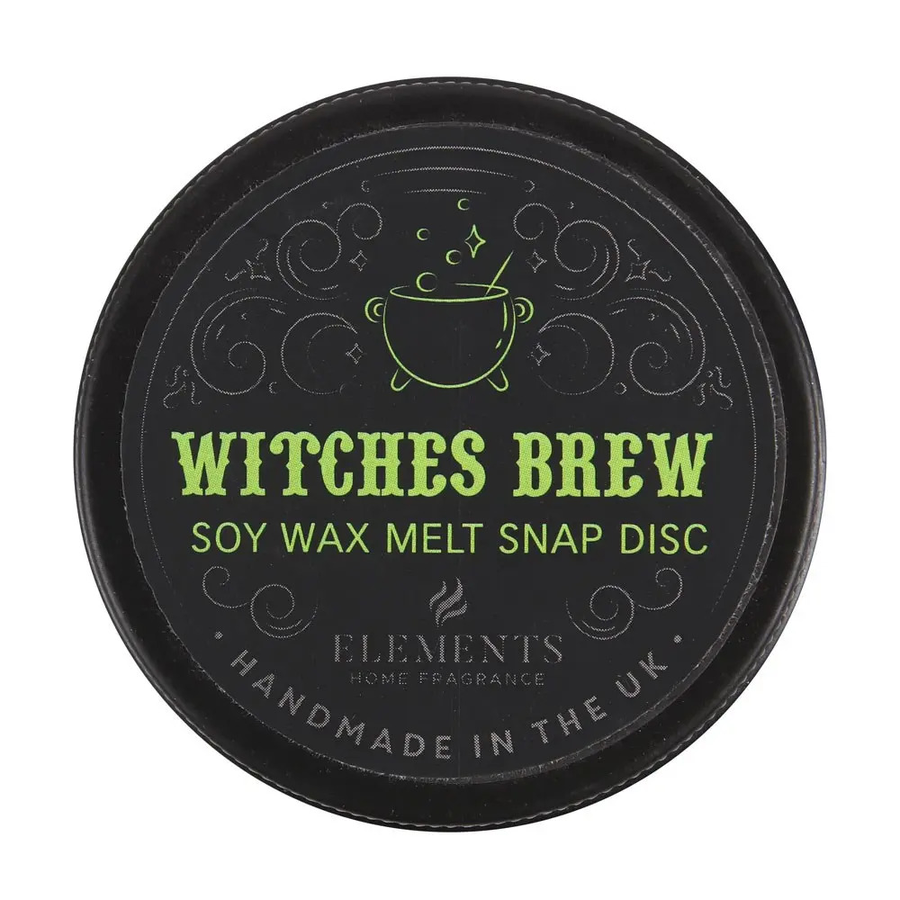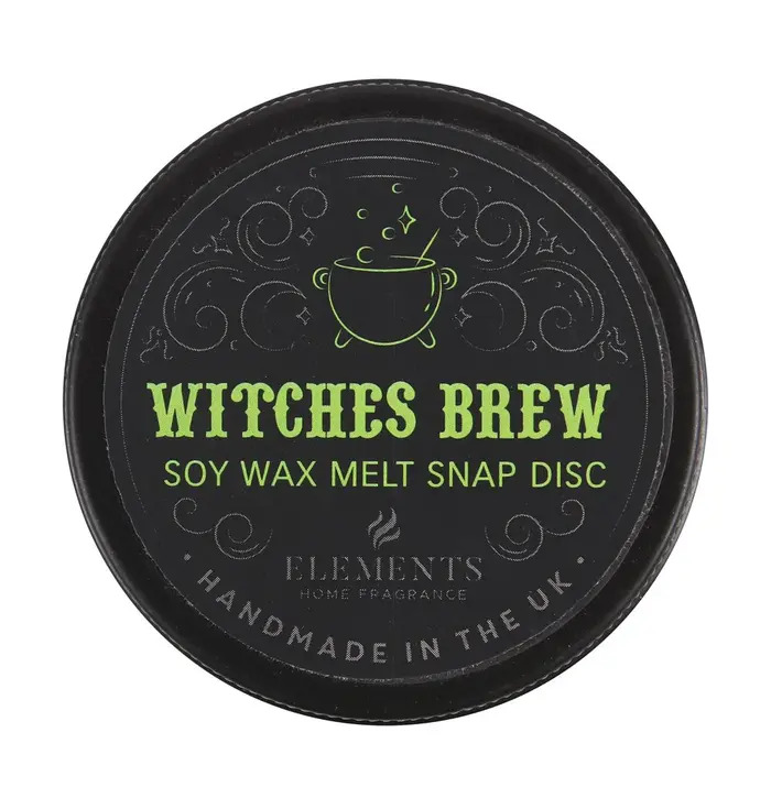 This Witches Brew soy wax melt snap disc offers a rich, enchanting fragrance perfect for creating a mystical and relaxing atmosphere at home. Handmade in the UK, the disc is designed to be easily snapped into smaller pieces for use in any wax melt burner. The black tin features a magical cauldron design with swirling decorative accents, adding a touch of charm to the presentation. Ideal for gifting or personal use, this wax melt provides a long-lasting scent experience and brings a whimsical, witchy vibe to any space.