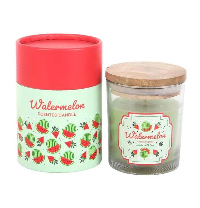 This refreshing watermelon-scented candle brings the sweet, juicy aroma of summer into any room. Presented in a clear glass jar with a charming illustrated label, it sits inside a matching pastel-green and red gift tube decorated with playful watermelon graphics. Hand-poured and made with love, this candle creates a bright, uplifting atmosphere—perfect for kitchens, living rooms, or as a cheerful gift for someone special.