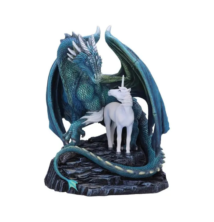 From the magical imagination of fantasy artist Lisa Parker is this Protector of Magick figurine. This enchanting white unicorn holds the last piece of magic in the world and their dragon companion protects them at all costs. The unicorn is shielded by the dragons iridescent wings and scaled tale. Cast in the finest resin before being expertly hand-painted, this Protector of Magick figurine is perfect for any fantasy lover.