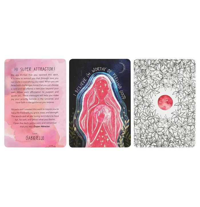 The Super Attractor 52-card deck by Gabrielle Bernstein is a vibrant, high-energy oracle deck designed to help you amplify your manifesting power. Each card features uplifting affirmations paired with dreamy, cosmic artwork by Micaela Ezra, guiding you to align with positivity, ease, and flow. Whether you're deepening your spiritual practice or seeking daily mindset shifts, this deck encourages you to trust the universe, embrace joy, and consciously attract what you desire. A beautiful tool for intention-setting, inspiration, and raising your vibration.