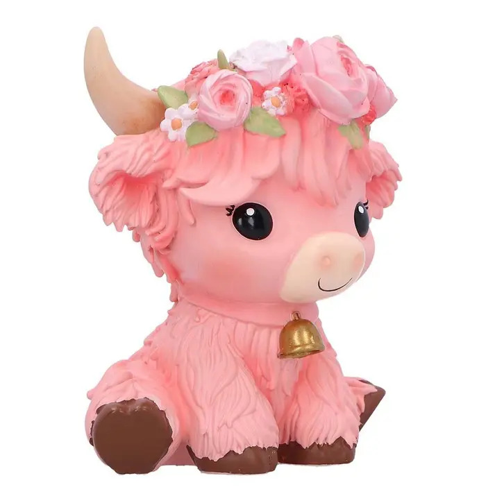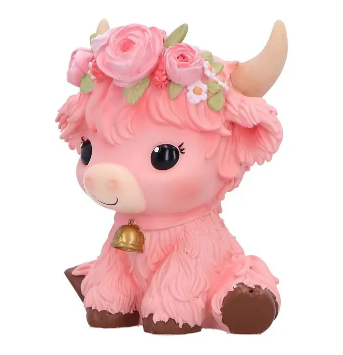 Brighten your space with Primrose. This adorable 10.8cm figurine features a playful pink cow sitting sweetly, adorned with delicate flowers on its head. Crafted from high-quality resin and packaged in a vibrant box, it's perfect for gifting or displaying right away. Ideal for animal lovers, collectors, and anyone who loves charming, colourful decor. Add this touch of joyful whimsy to your home or surprise someone special with this delightful figurine!