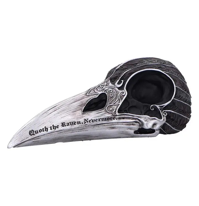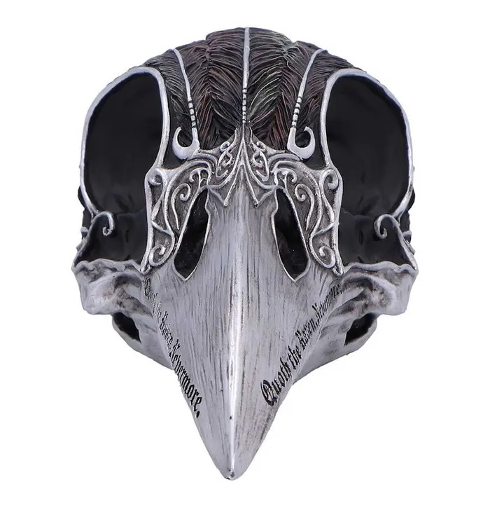 The Quoth the Raven Skull Ornament from Nemesis Now is a gothic-inspired decorative piece that captures the dark beauty of the raven in stunning detail. Cast in high-quality resin and hand-painted, it features a matte black finish with silver accents highlighting the beak and design. Packaged in a Nemesis Now box, it's ideal for gifting or displaying with pride. Perfect for gothic decor lovers, dark fantasy fans, and collectors of the macabre, this striking ornament adds an eerie elegance to any space. Embrace your darker aesthetic with this bold and beautifully crafted piece.