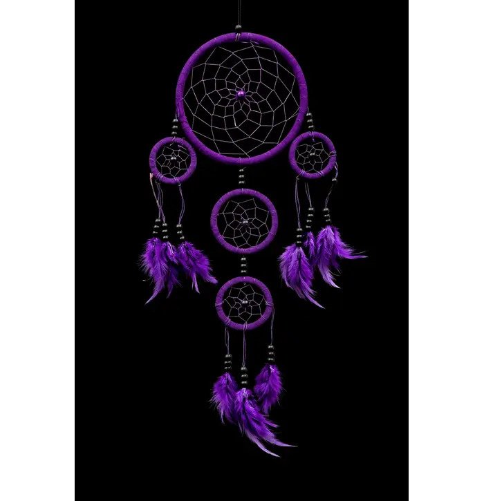 Add a touch of bohemian charm and spiritual style to your space with this beautiful purple dreamcatcher wall hanging. Featuring a striking multi-ring design, hand-woven webbing, and soft purple feathers, this dreamcatcher is perfect for bedrooms, living rooms, meditation spaces, or as a meaningful gift.