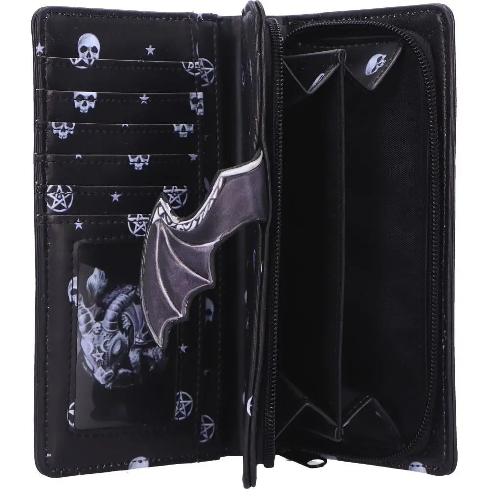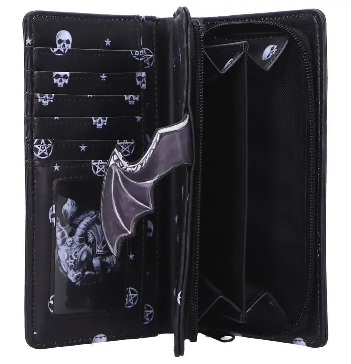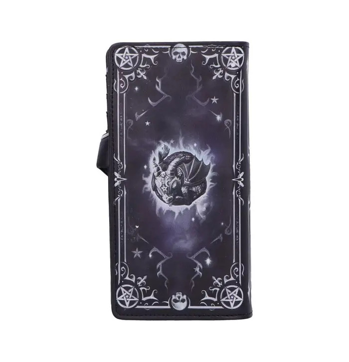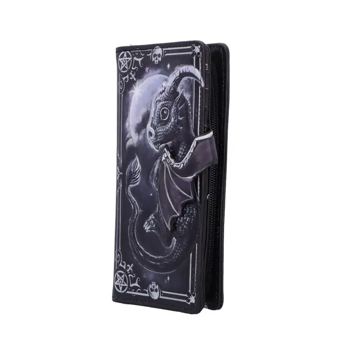 The Moon of Lucifly Embossed Purse is a bold and enchanting accessory featuring Nemesis Now's original Lucifly character from the popular Cult Cuties range. Crafted from durable leather, it showcases intricate embossed gothic artwork, crescent moon motifs, and a zip-around closure with compartments for your essentials. Packaged in a protective polybag with Cult Cuties branding, it's perfect for gifting or treating yourself. Ideal for fans of gothic fashion, alternative style, and quirky collectibles, this purse adds a darkly cute twist to your everyday look.