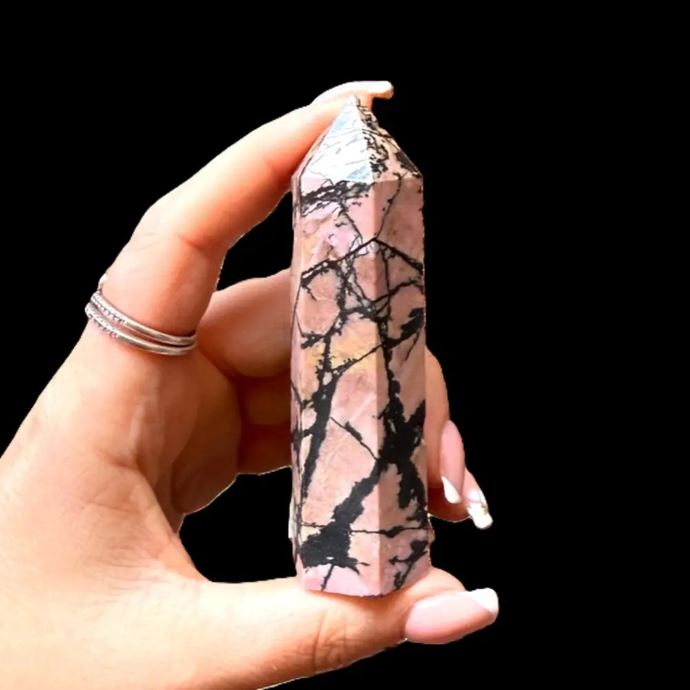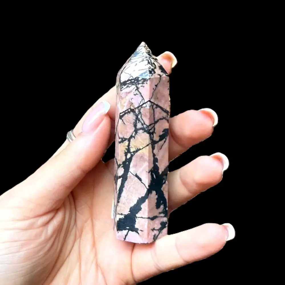 This striking pink and black Rhodonite tower is known as a stone of compassion, emotional healing, and heart chakra activation. It helps release fear, resentment, and emotional blockages while nurturing love and forgiveness within. Perfect for meditation, energy healing, or as a beautiful decor piece to bring calming, balanced energy to your space.