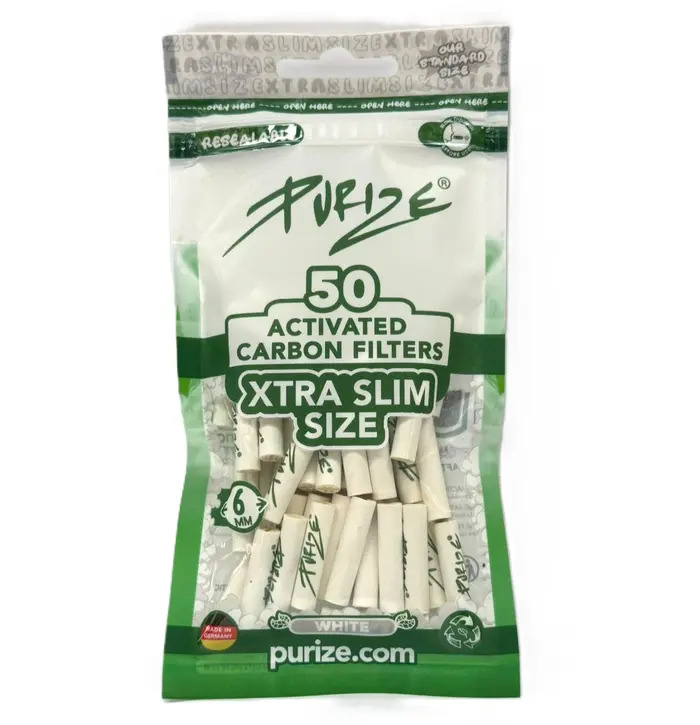 Improve your smoking experience with these Purize XTRAslim White Tips, made with coconut shell and carbon to give you a cleaner pull every time