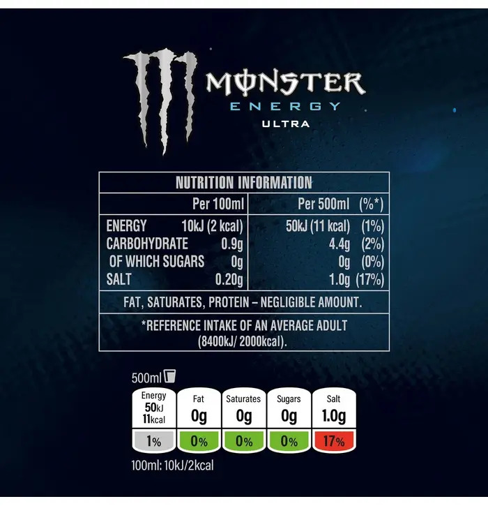 Monster Energy Ultra, sugar-free has a refreshing taste and doesn't taste like traditional energy drinks and still has the full Monster energy blend. Monster Ultra's lighter tasting flavour profile is a less sweet, sparkling energy drink that delivers refreshment. Monster Energy Ultra is great for any occasion.
