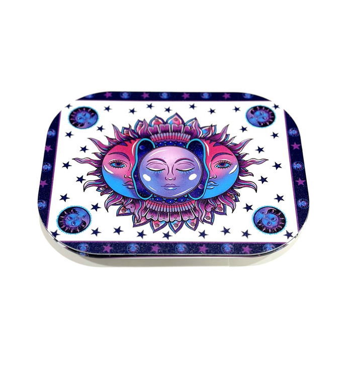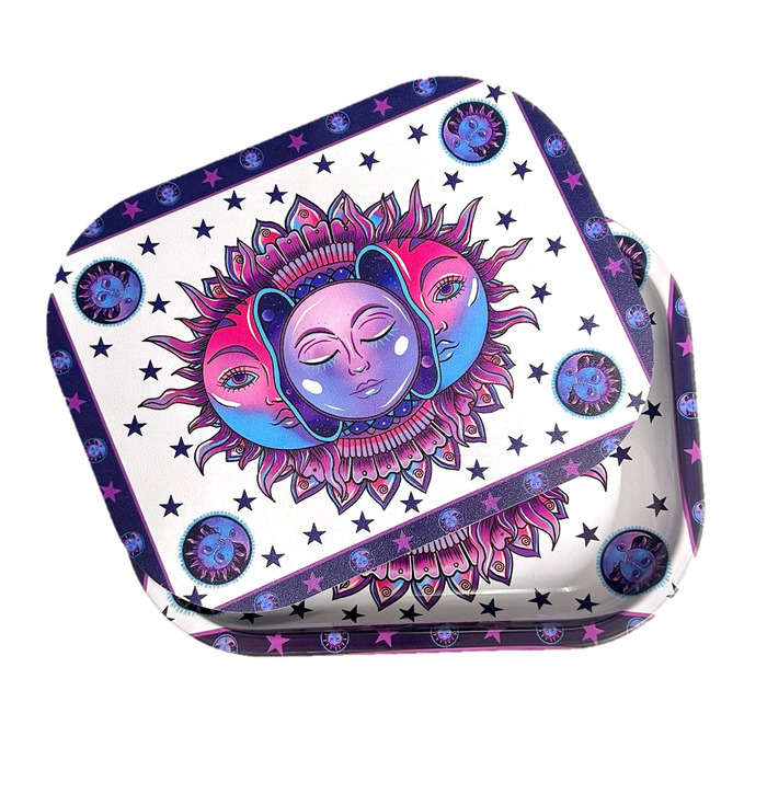 Keep all your rolling accessories protected and in one place with this Hippy Magnetic Tray Cover! This cover features the same stylish design as our Hippy Rolling tray, With a Deep purple border surrounding a mesmerising Sun & Moon design!