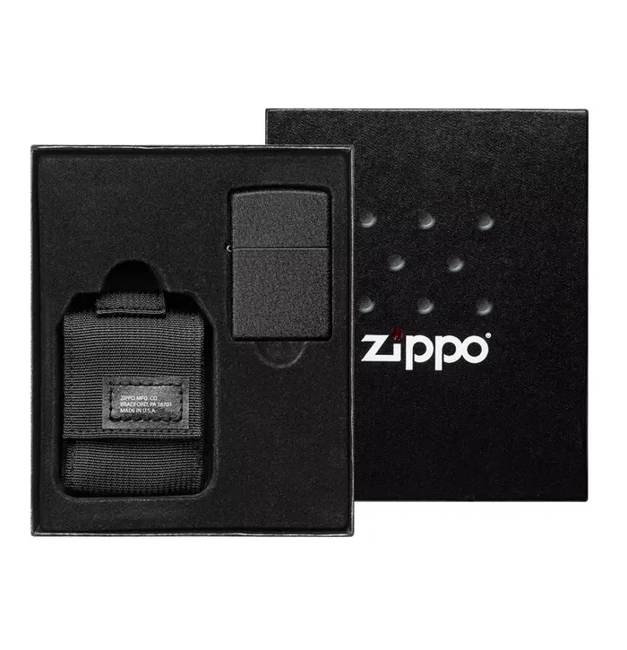 Zippo Black Crackle Lighter Molle Pouch Gift Set