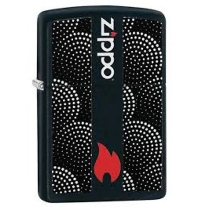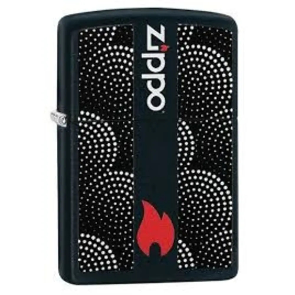 Dot by dot, discover a real Windproof Zippo lighter! This design features the original Zippo flame, colour imaged in red onto the black matte lighter.